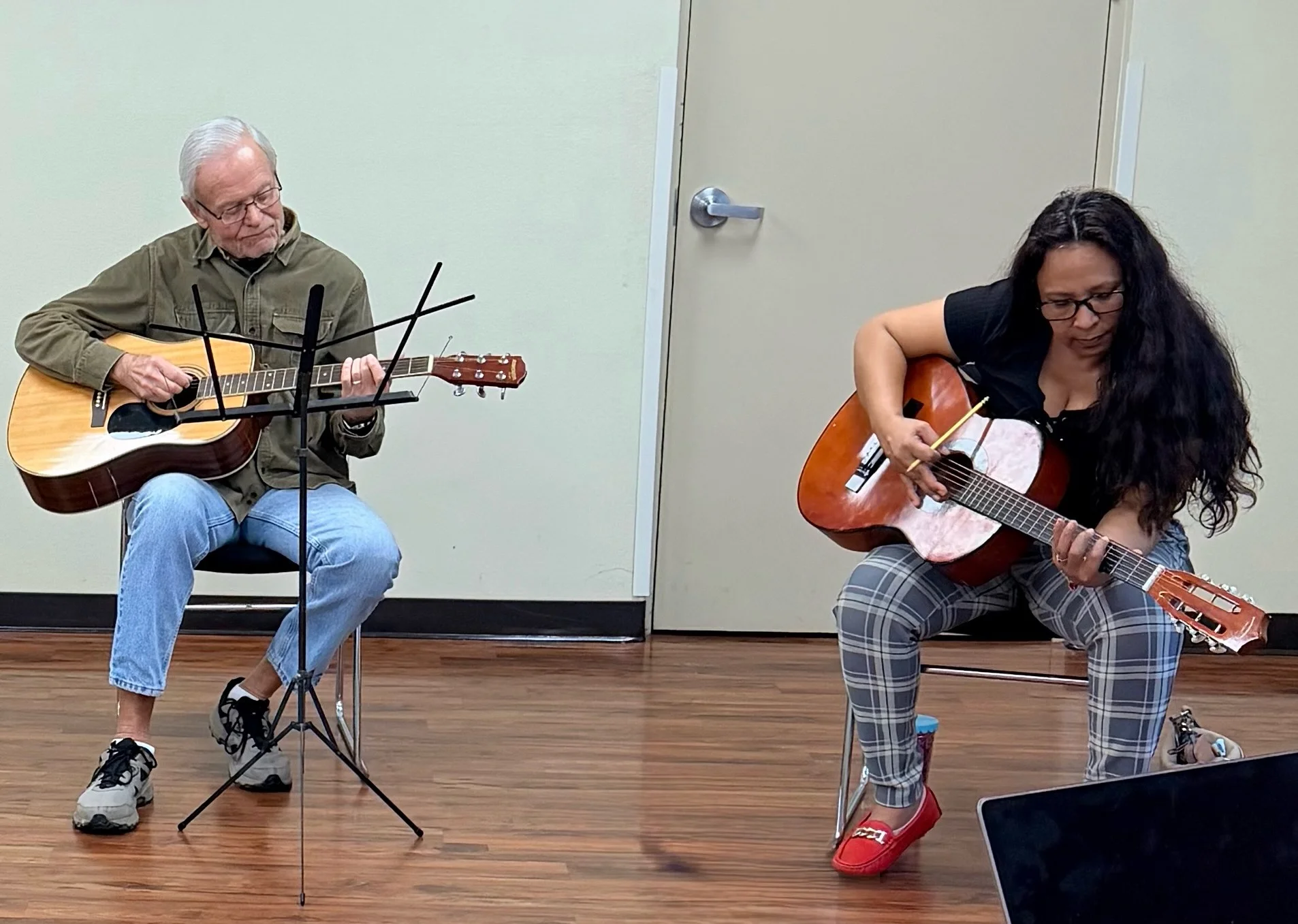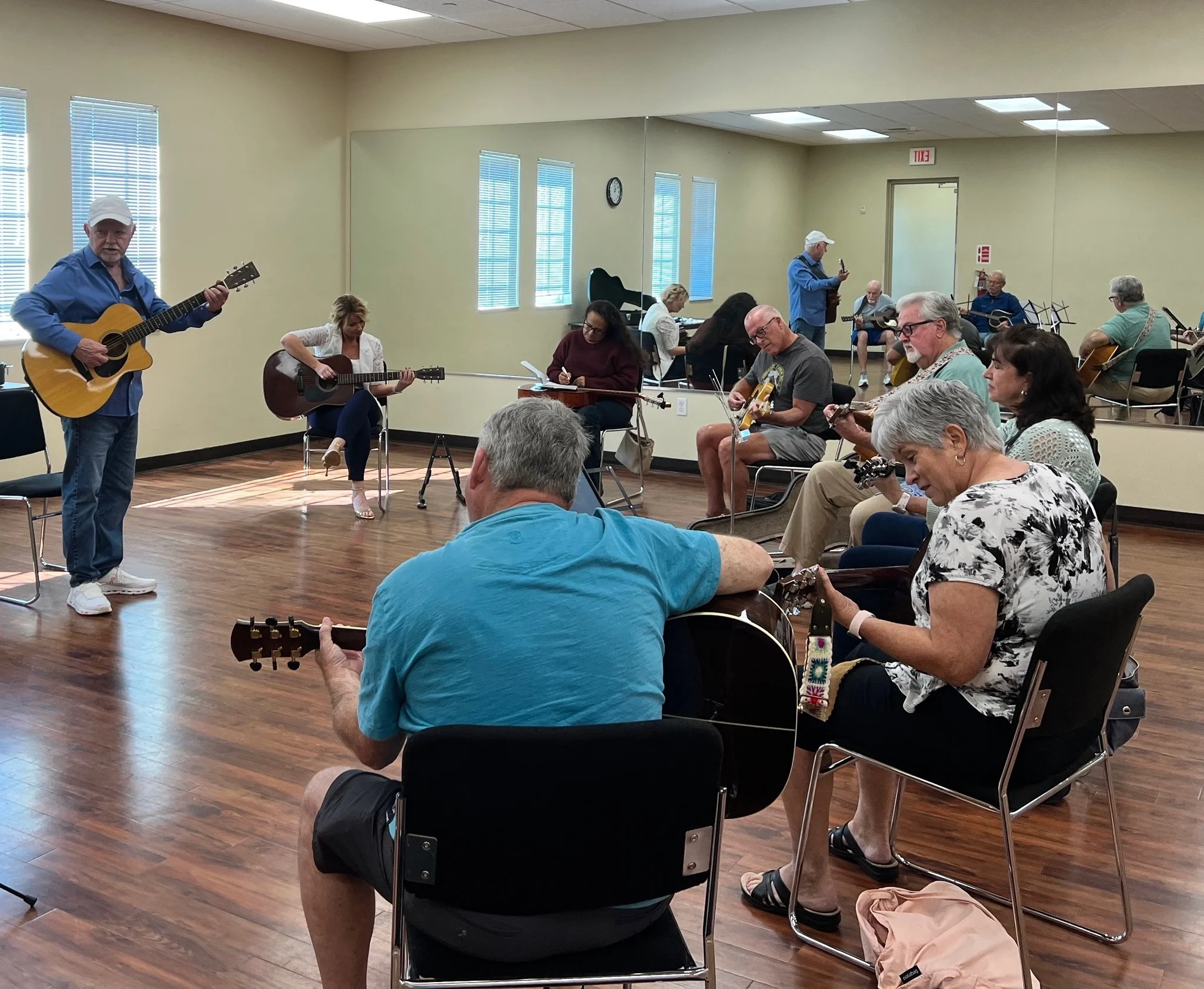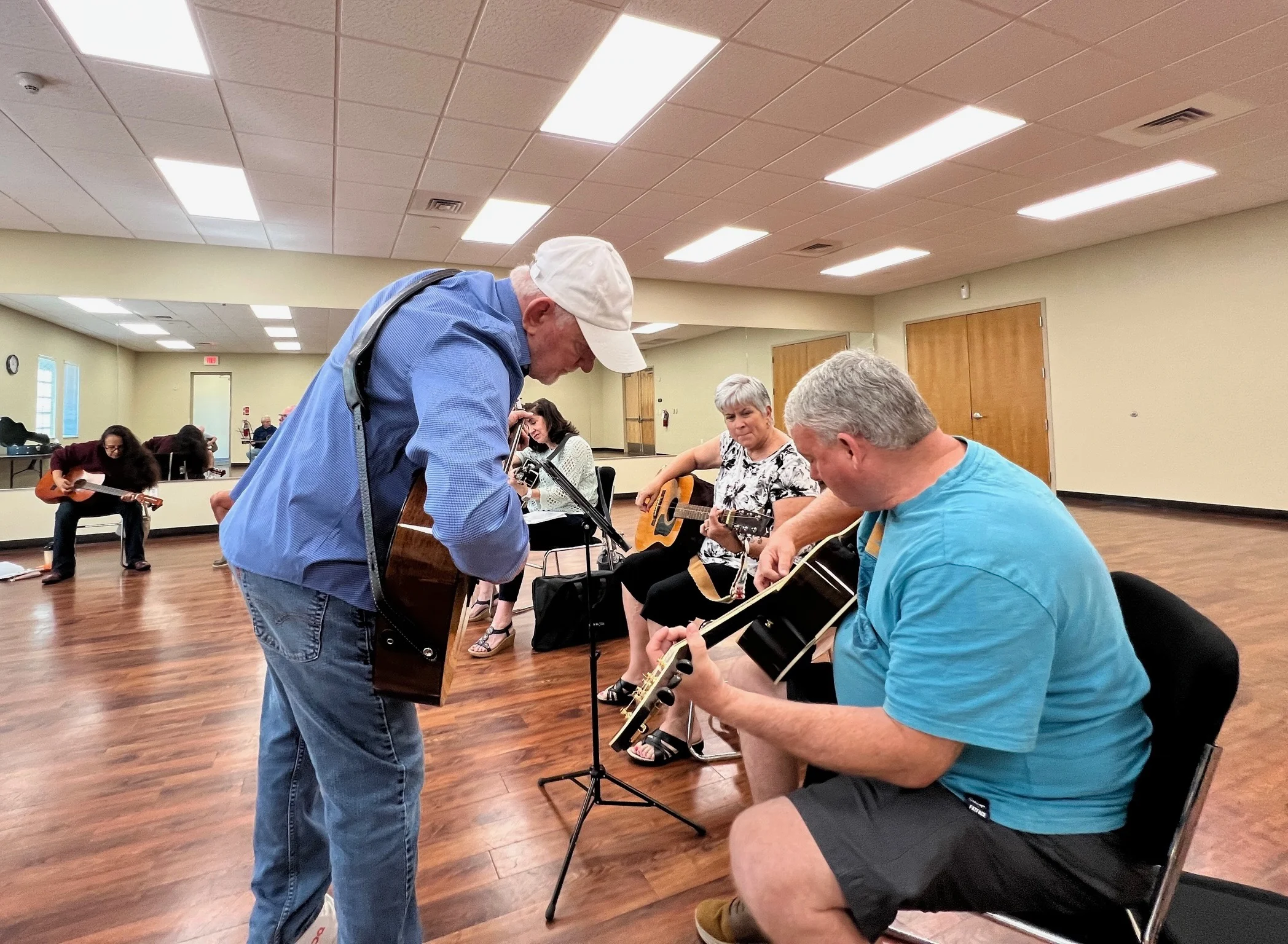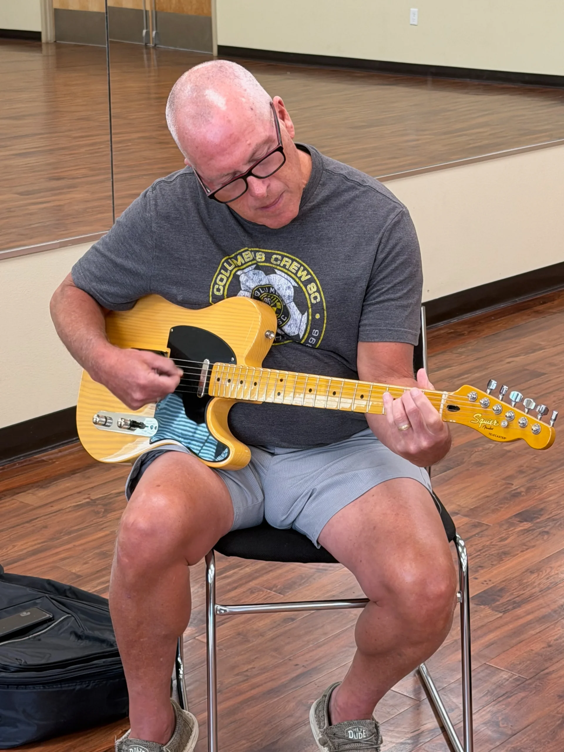 He’s been playing for over 60 years, has toured as a working musician, and later studied how adults learn (andragogy), which shaped how he teaches today.