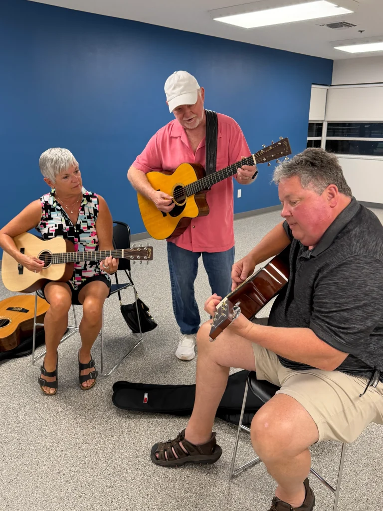 Pat has taught thousands of students over the years and now focuses on helping adults 55+ learn guitar in a calm, encouraging way through online courses.